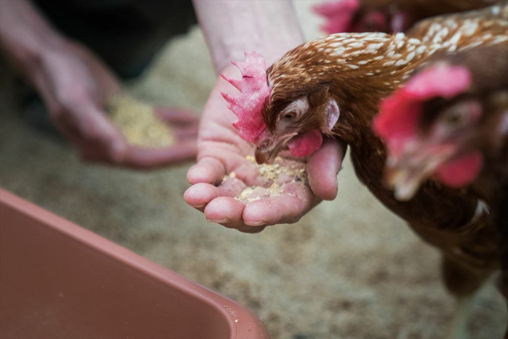 環境 平飼いで自由に動き回れるにわとりの飼育環境
