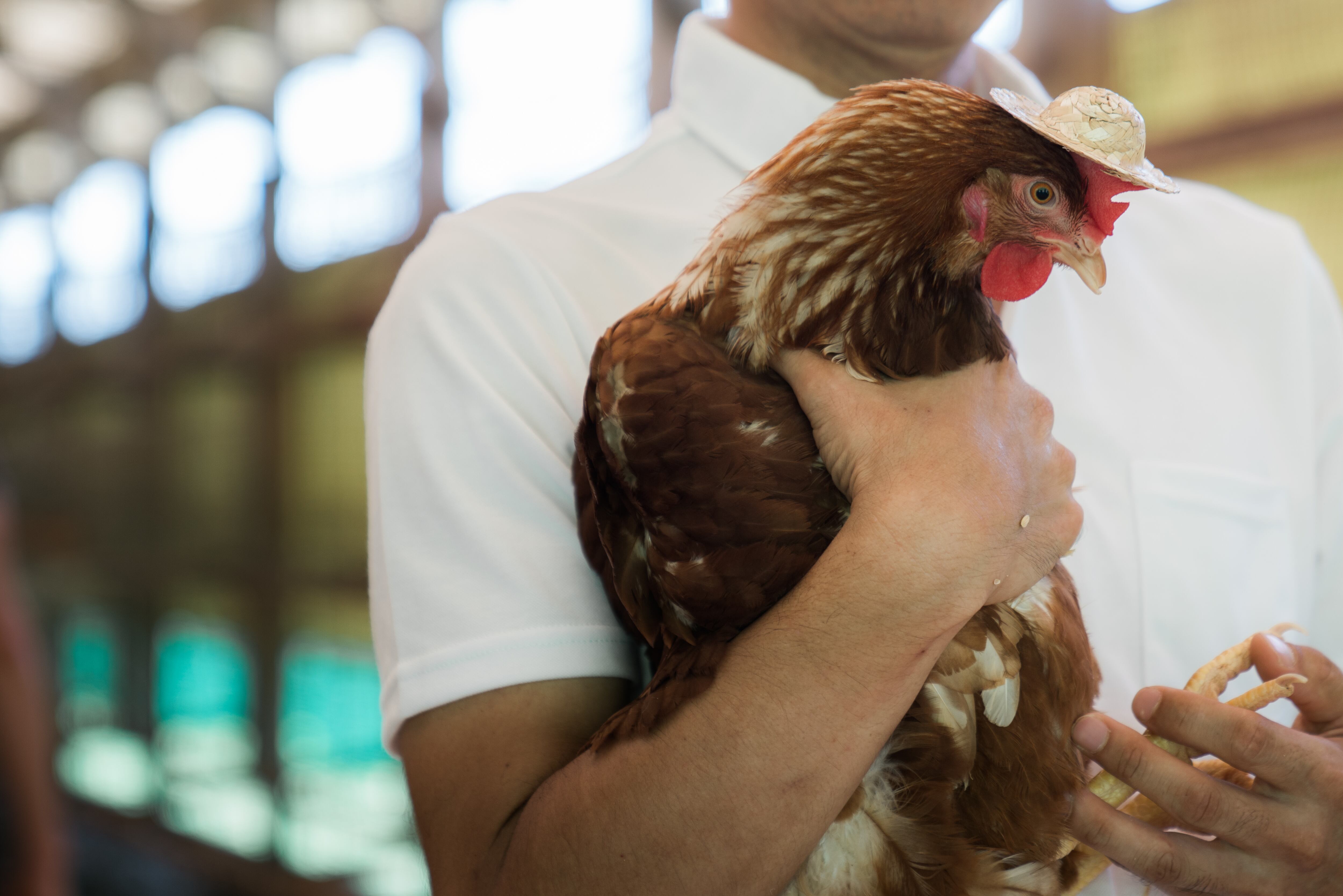 環境 平飼いで自由に動き回れるにわとりの飼育環境