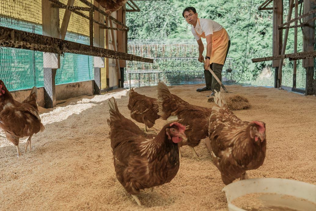 環境 平飼いで自由に動き回れるにわとりの飼育環境